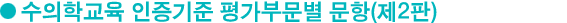 | 한국수의학교육인증원은 수의학교육 평가와 인증을 원하는 대학의 신청을 구미와 마찬가지로 연중 수시로 받고 있다. 인 증비는 자체평가위원 1회 교육(1시간), 서면평가 및 방문평가를 포함하여 2,300만원이며, 인증평가신청서 접수 이후 일정 은 자체평가보고서 접수 및 서면평가, 현지방문평가, 예비평가, 인증서 전달 순으로 진행된다. |